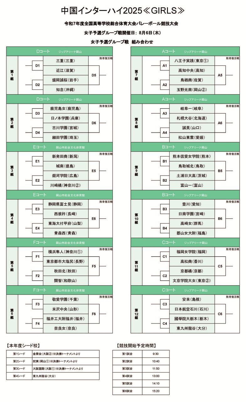 | 【バレー】女子は岡山で開幕 大会初日(8/6)の全36試合を紹介【中国インターハイ2025 令和7年度全国高等学校総合体育大会バレーボール競技大会(中国インターハイ2025)女子は8月5日(火)にジップアリーナ岡山(岡山)で開会式が行われ… (出典:月刊バレーボール) |